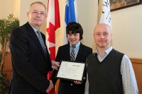 1) The award being presented by J-P ThiƩblot of Call2Recycle and Craig Francis of Kidoons.